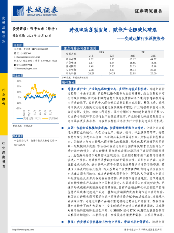 【长城证券】【20211013】交通运输行业深度报告:跨境电商蓬勃发展,赋能产业链乘风破浪-39页