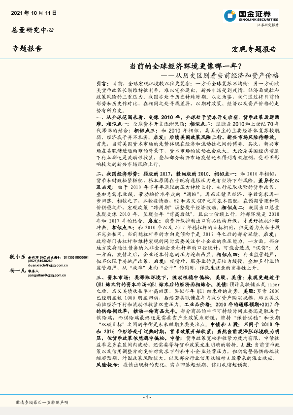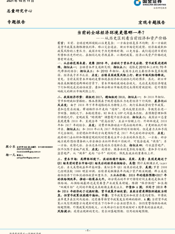 【国金证券】【20211011】从历史区别看当前经济和资产价格,当前的全球经济环境更像哪一年?-16页