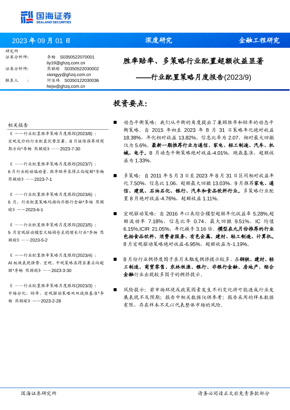 【国海证券】【20230901】行业配置策略月度报告:胜率赔率、多策略行业配置超额收益显著-15页