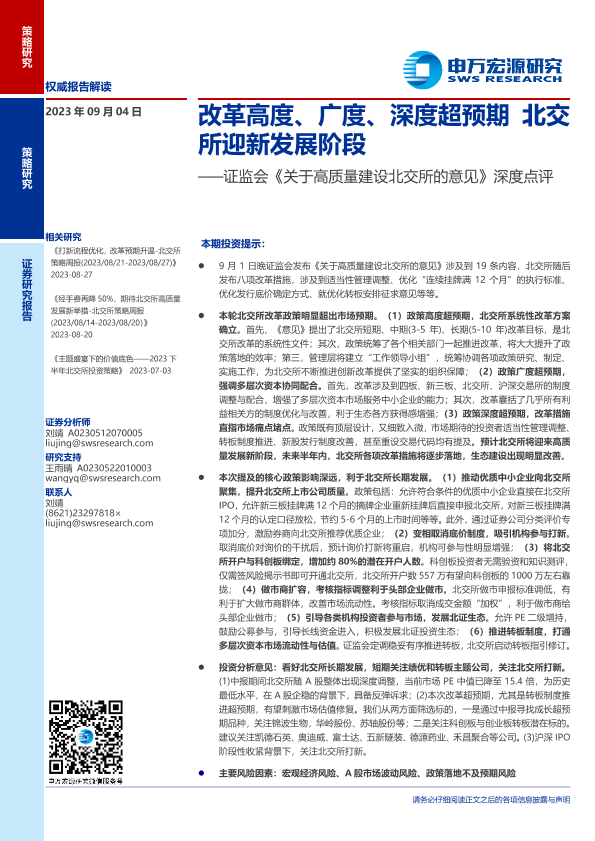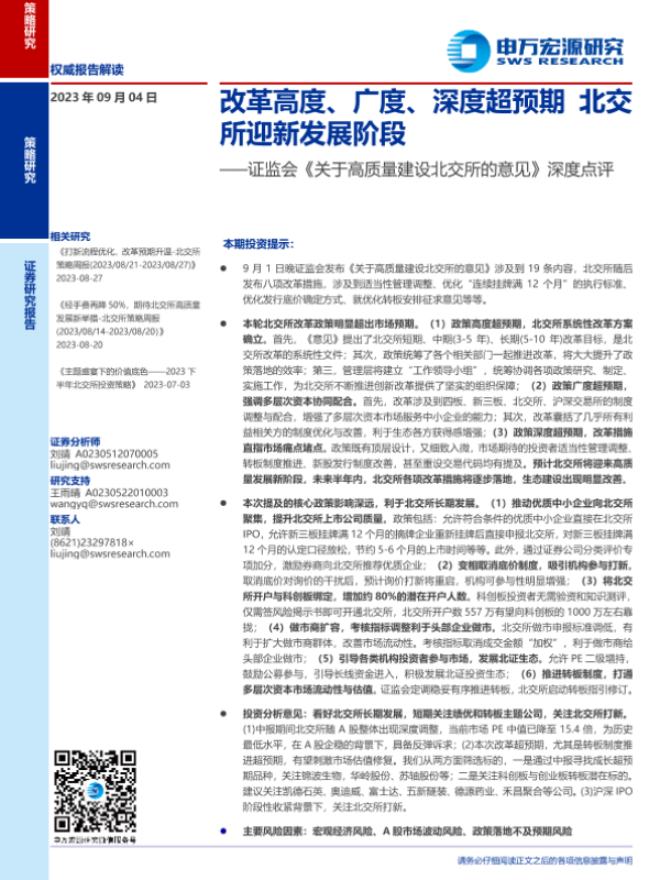 【申万宏源】【20230904】证监会《关于高质量建设北交所的意见》深度点评:改革高度、广度、深度超预期,北交所迎新发展阶段-26页