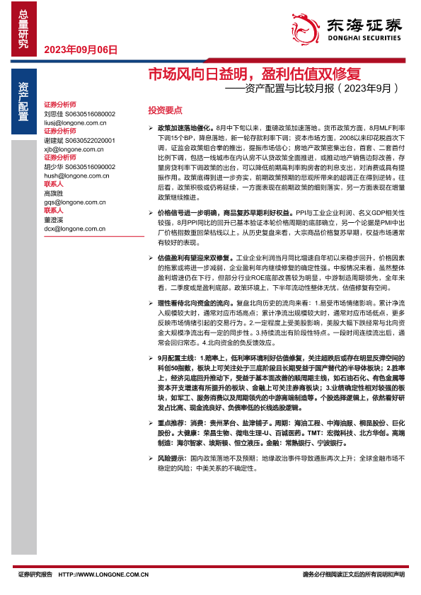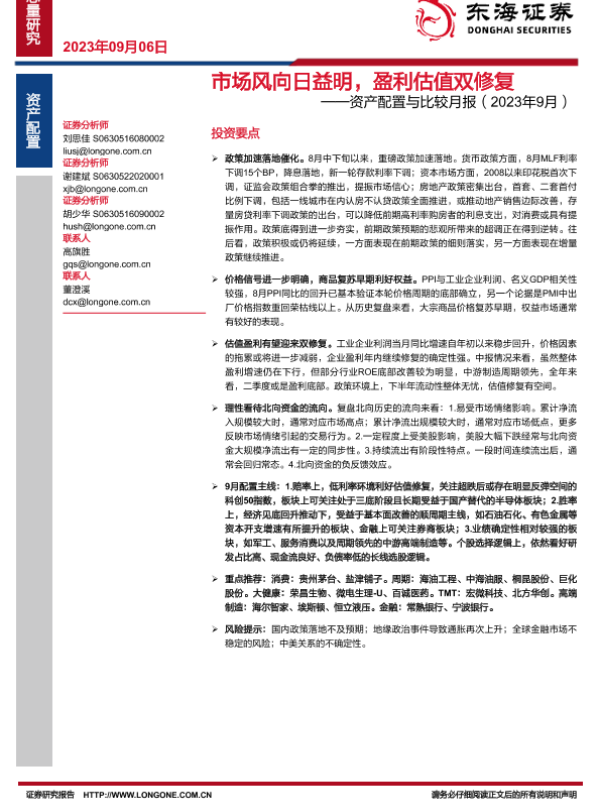 【东海证券】【20230906】市场风向日益明,盈利估值双修复——资产配置与比较月报(2023年9月)-29页