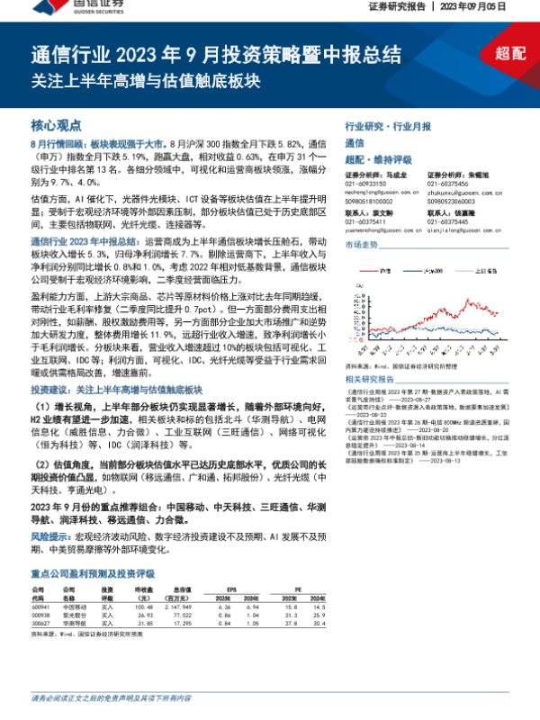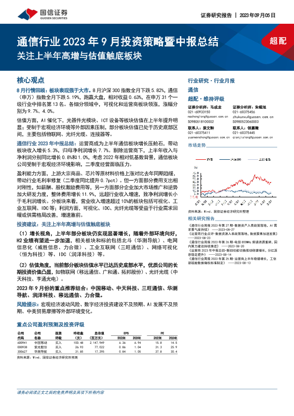 【国信证券】【20230905】通信行业2023年9月投资策略暨中报总结:关注上半年高增与估值触底板块-47页