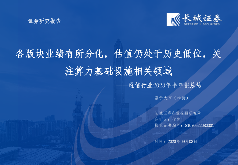 【长城证券】【20230903】通信行业2023年半年报总结:各版块业绩有所分化,估值仍处于历史低位,关注算力基础设施相关领域-47页