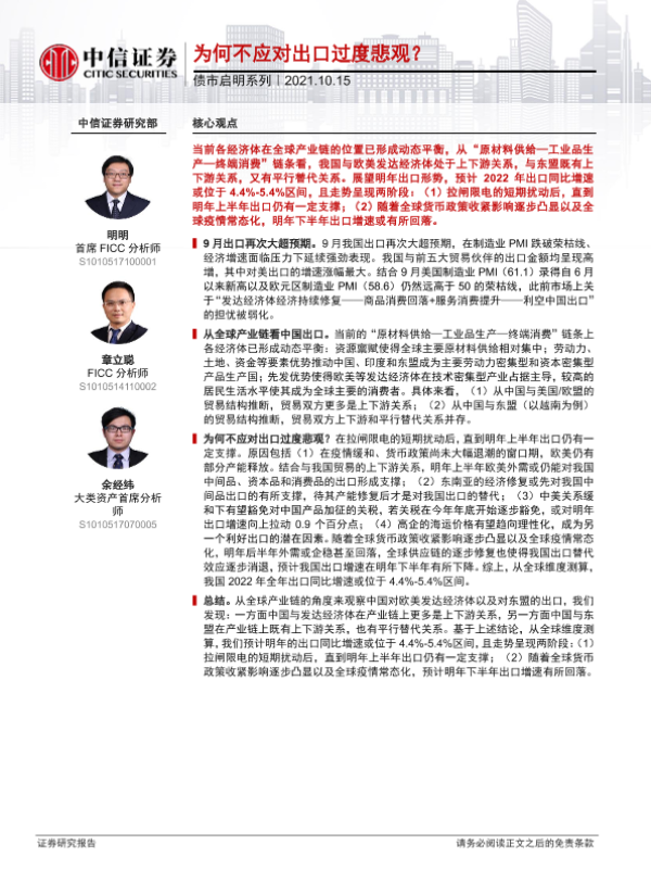 【中信证券】【20211015】债市启明系列:为何不应对出口过度悲观?-32页