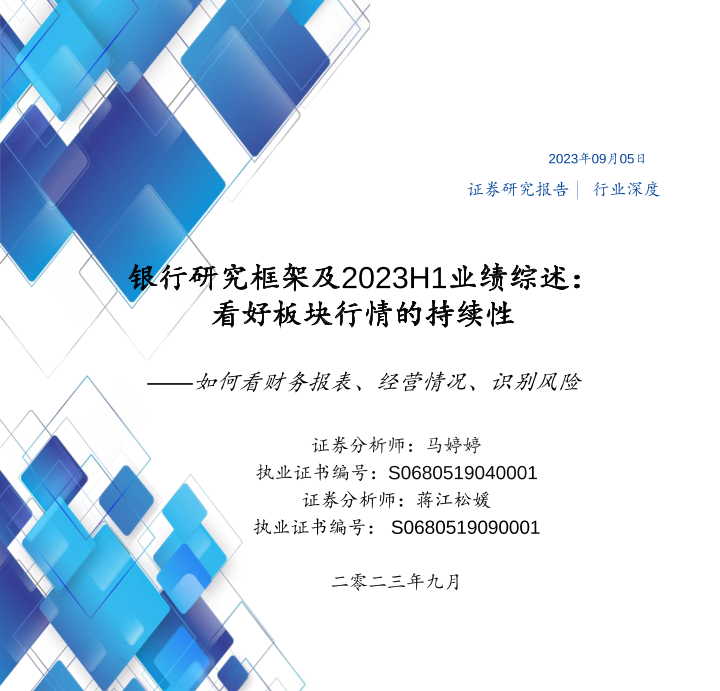 【国盛证券】【20230905】银行业研究框架及2023H1业绩综述:看好板块行情的持续性,如何看财务报表、经营情况、识别风险-67页