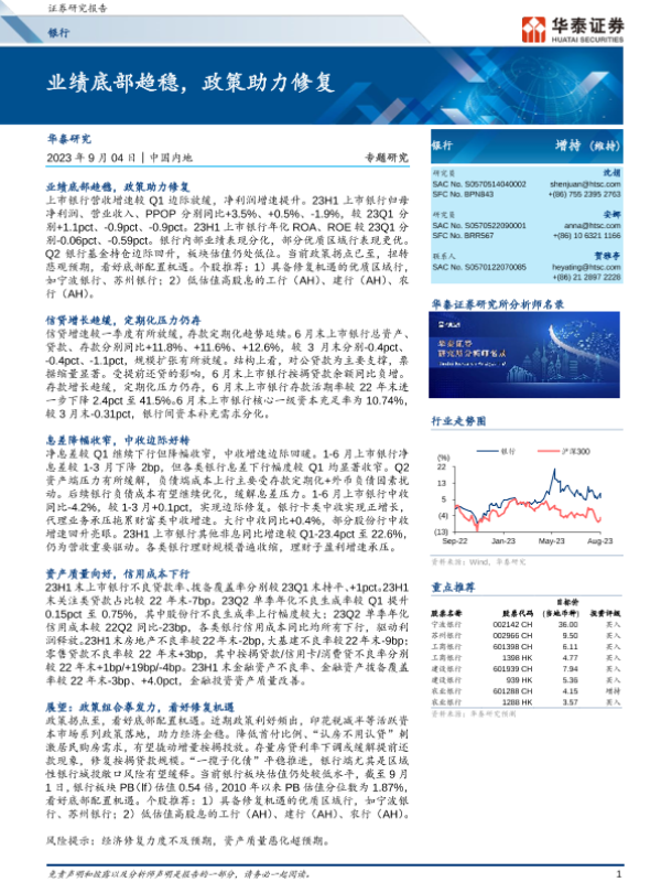 【华泰证券】【20230904】银行业:业绩底部趋稳,政策助力修复-29页