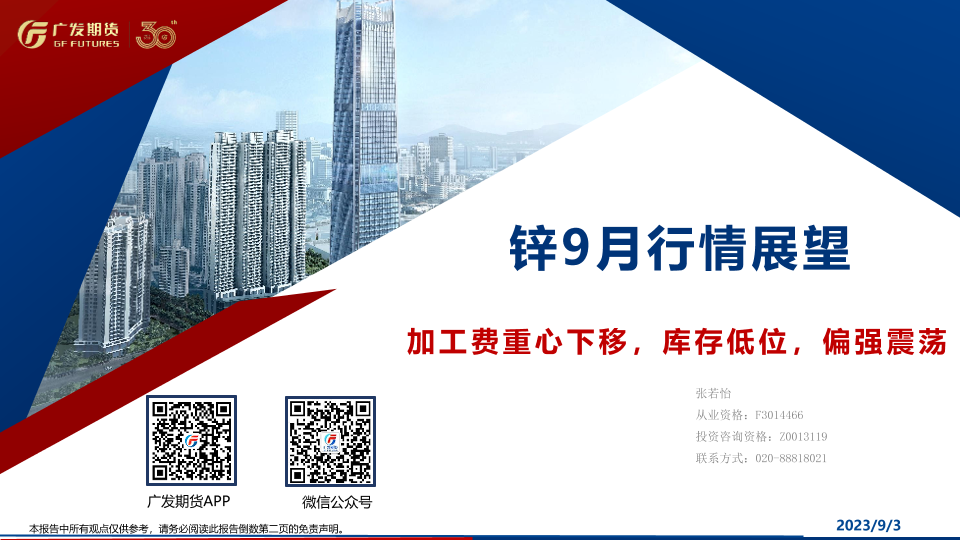 【广发期货】【20230903】锌9月行情展望:加工费重心下移,库存低位,偏强震荡-25页