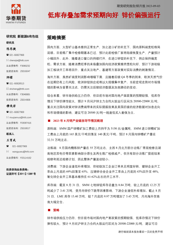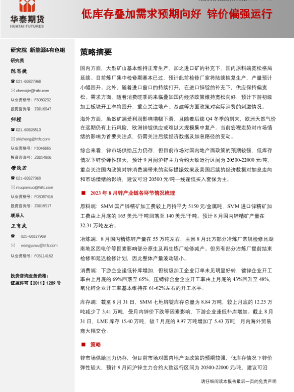 【华泰期货】【20230903】锌月报:低库存叠加需求预期向好,锌价偏强运行-22页