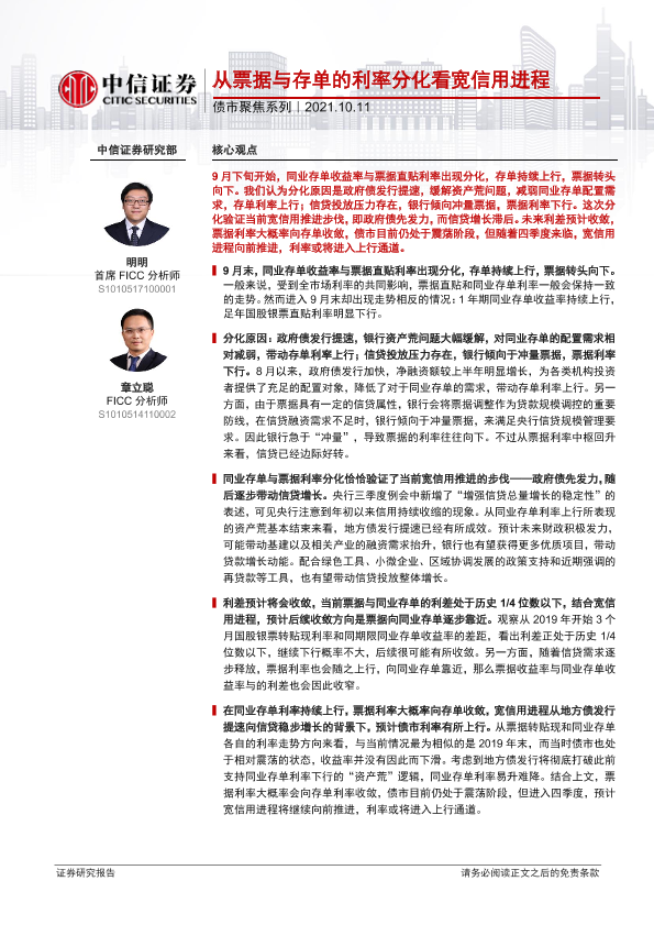 【中信证券】【20211011】债市聚焦系列:从票据与存单的利率分化看宽信用进程-25页