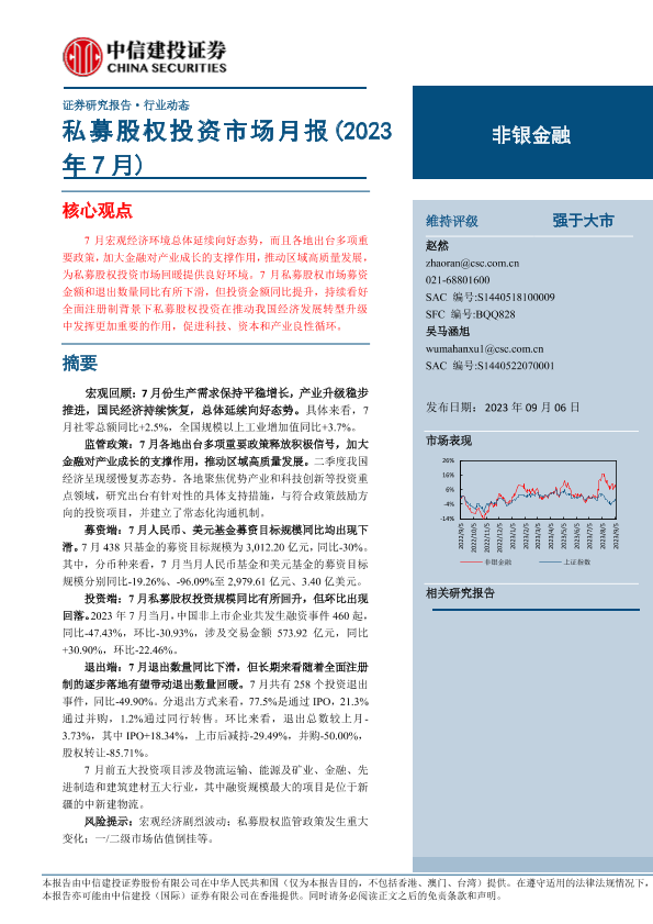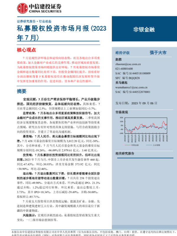 【中信建投证券】【20230906】非银金融行业:私募股权投资市场月报(2023年7月)-21页