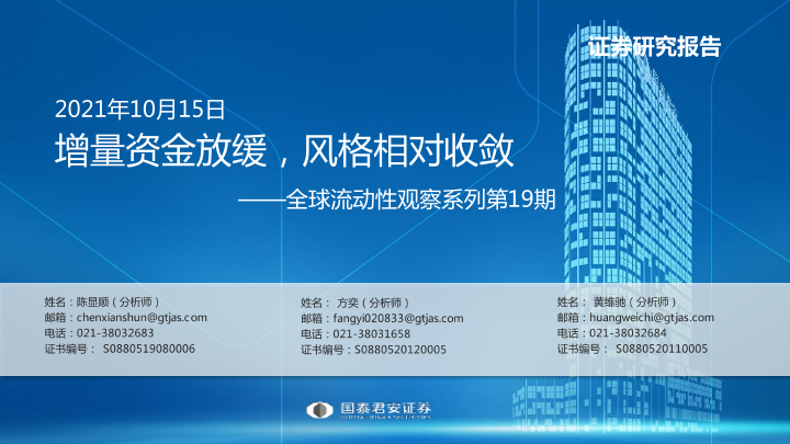 【国泰君安证券】【20211015】全球流动性观察系列第19期:增量资金放缓,风格相对收敛-27页