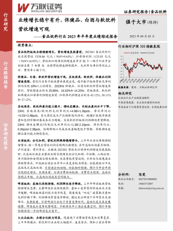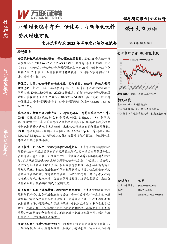 【万联证券】【20230905】食品饮料行业2023年半年度业绩综述报告:业绩增长稳中有升,保健品、白酒与软饮料营收增速可观-20页