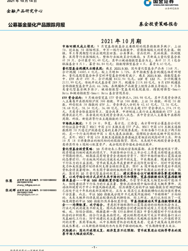 【国金证券】【20211014】公募基金量化产品跟踪月报:2021年10月期-19页