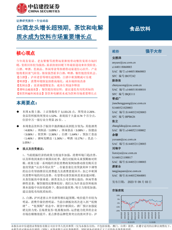 【中信建投证券】【20230903】食品饮料行业:白酒龙头增长超预期,茶饮和电解质水成为饮料市场重要增长点-67页