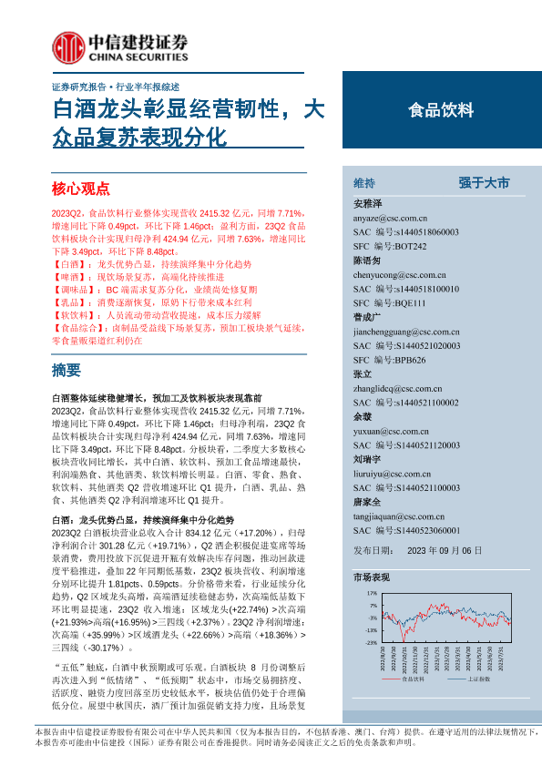 【中信建投证券】【20230906】食品饮料行业:白酒龙头彰显经营韧性,大众品复苏表现分化-133页