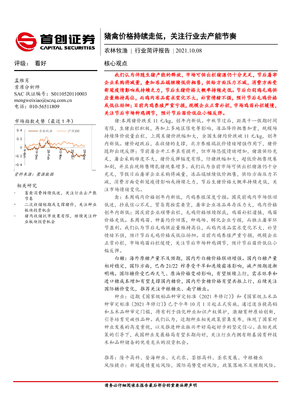 【首创证券】【20211008】农林牧渔行业简评报告:猪禽价格持续走低,关注行业去产能节奏-20页