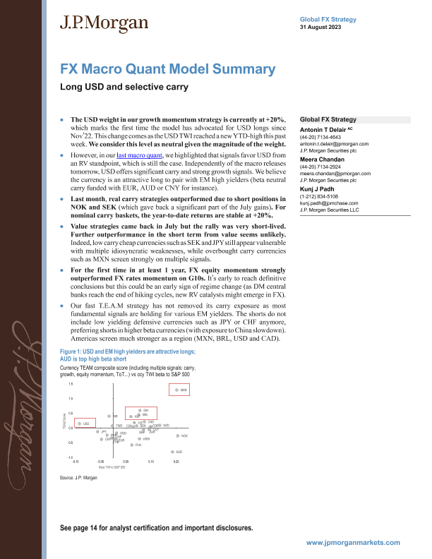 【J.P. Morgan】【20230831】Econ FI-FX Macro Quant Model Summary Long USD and selective carry-17页