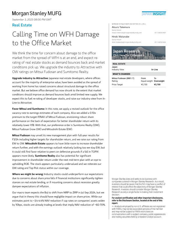 【Morgan Stanley】【20230829】Calling Time on WFH Damage to the Office Market-55页