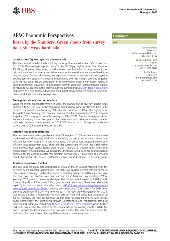 【UBS Securities Asia Limited】【20230828】APAC Economic Perspectives _Korea by the Numbers-22页