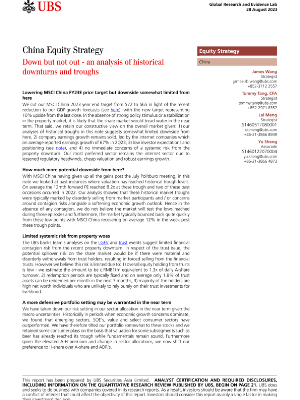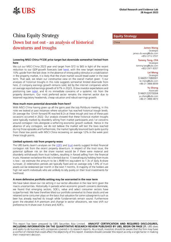 【UBS Securities Asia Limited】【20230828】es-China Equity Strategy _Down but not out - an analysis of historical downturns and troughs-26页