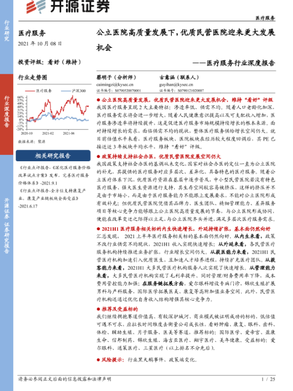 【开源证券】【20211008】医疗服务行业深度报告:公立医院高质量发展下,优质民营医院迎来更大发展机会-25页