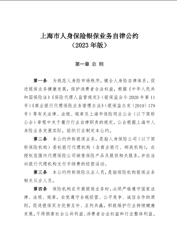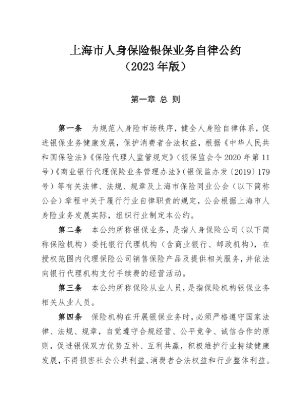 【上海市保险同业公会】【2023】上海市人身保险银保业务自律公约-7页