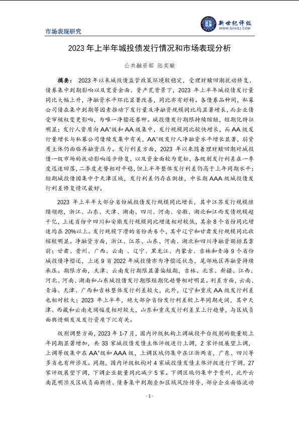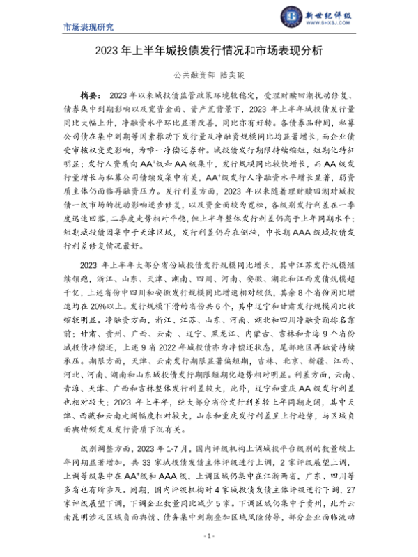 【新世纪评级】【20230101】2023年上半年城投债发行情况和市场表现分析-16页
