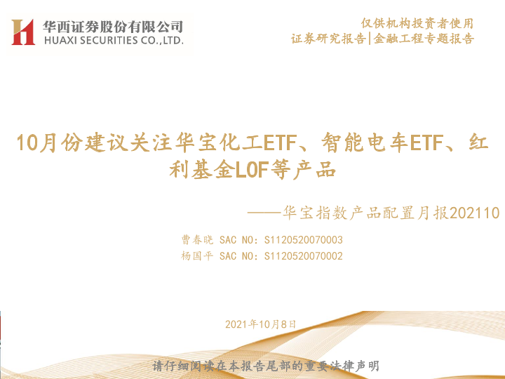 【华西证券】【20211008】华宝指数产品配置月报:10月份建议关注华宝化工ETF、智能电车ETF、红利基金LOF等产品-24页