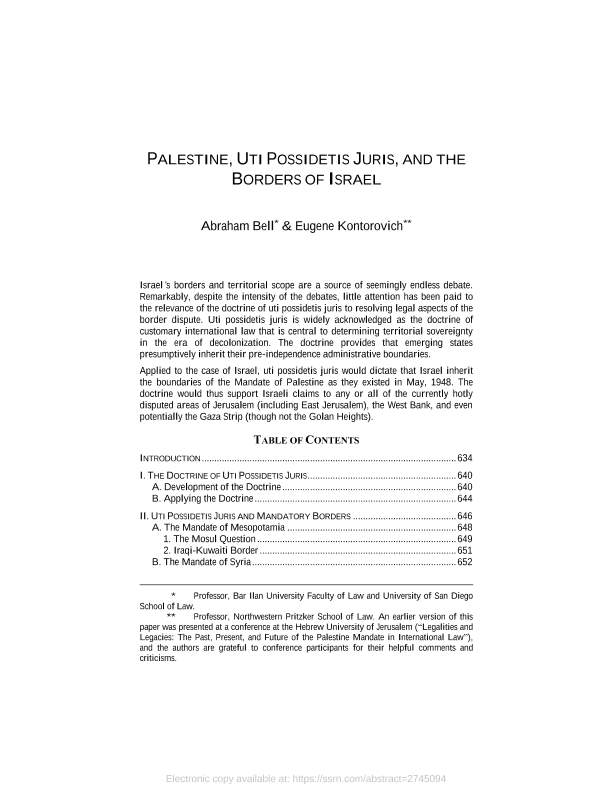 【Abraham Bell&Eugene Kontorovich】【20160101】巴勒斯坦、实际占有法和以色列边界-60页