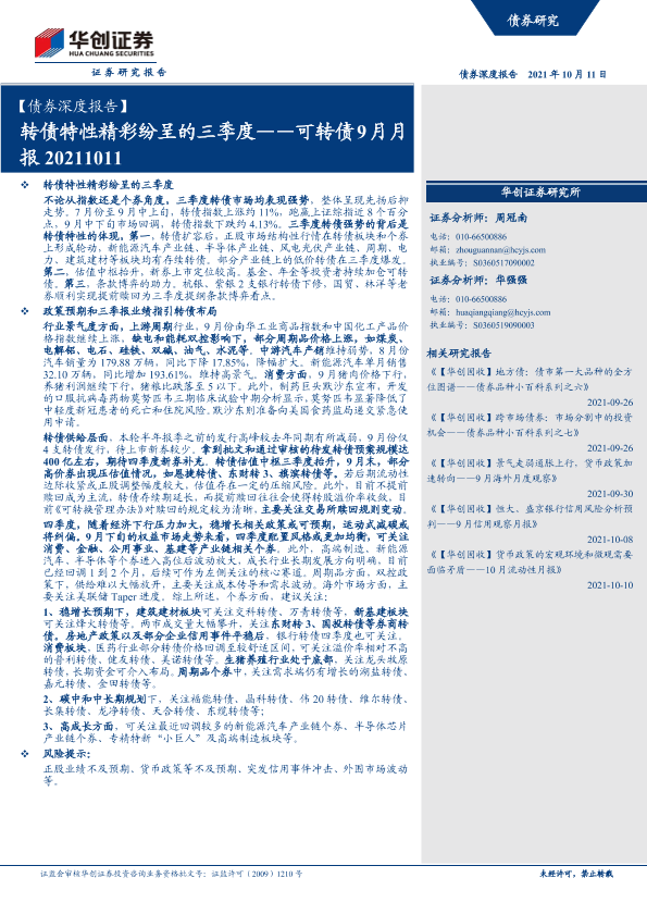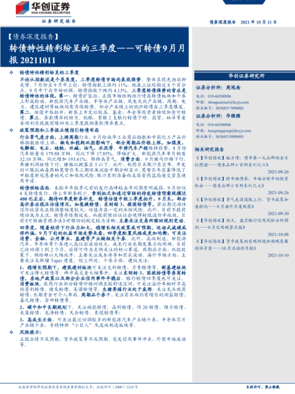 【华创证券】【20211011】可转债9月月报:转债特性精彩纷呈的三季度-19页