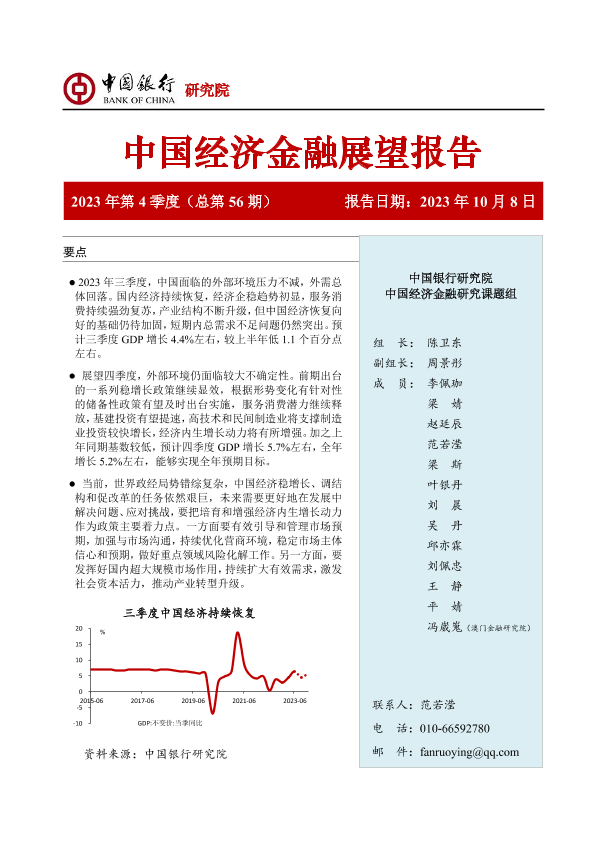 【中国银行研究院】【20231008】中国经济金融展望报告(2023年第4季度)-56页