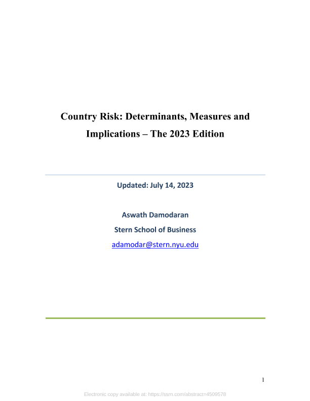 【Aswath Damodaran&Stern School of Business】【20230714】全球国家风险评估:决定因素、措施和影响——2023年版-126页