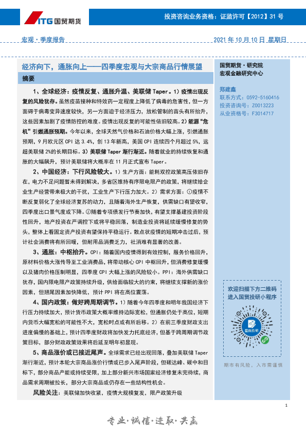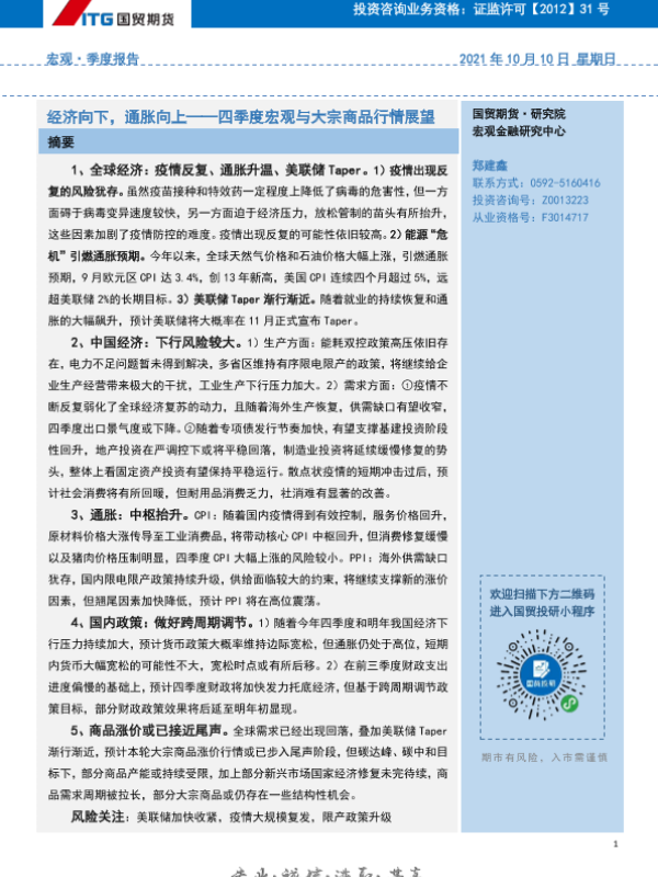 【国贸期货】【20211010】四季度宏观与大宗商品行情展望:经济向下,通胀向上-27页
