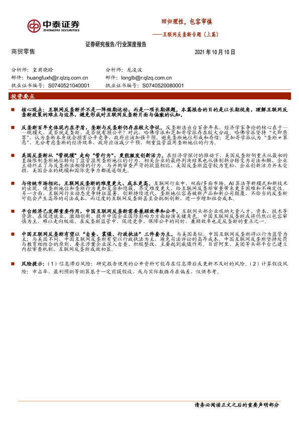 【中泰证券】【20211010】商贸零售行业:互联网反垄断专题(上篇),回归理性,包容审慎-20页