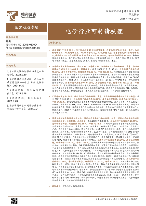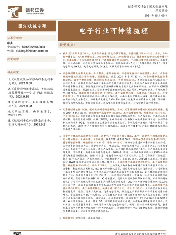 【德邦证券】【20211009】固定收益专题:电子行业可转债梳理-53页