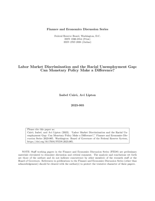 【Federal Reserve Board】【20231001】劳动力市场歧视与种族失业差距:货币政策能有所作为吗?-64页