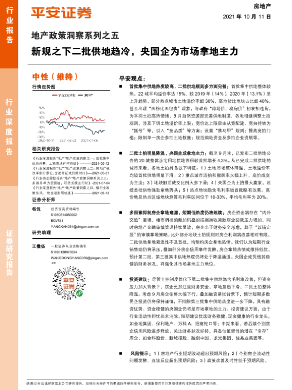 【平安证券】【20211011】地产行业政策洞察系列之五:新规之下二批供地趋冷,央国企为市场拿地主力-15页