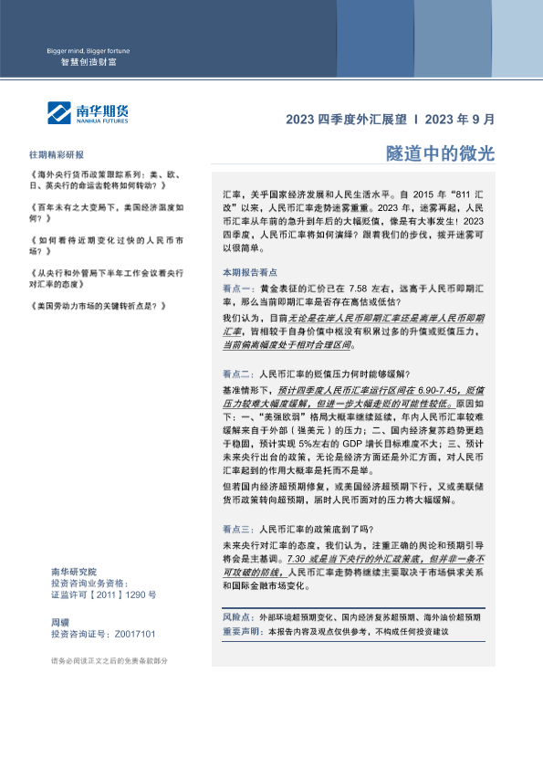 【南华期货】【20230928】2023四季度外汇展望:隧道中的微光-43页