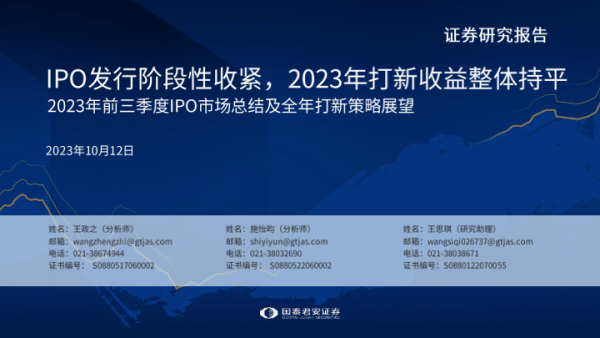 【国泰君安证券】【20231012】2023年前三季度IPO市场总结及全年打新策略展望-32页