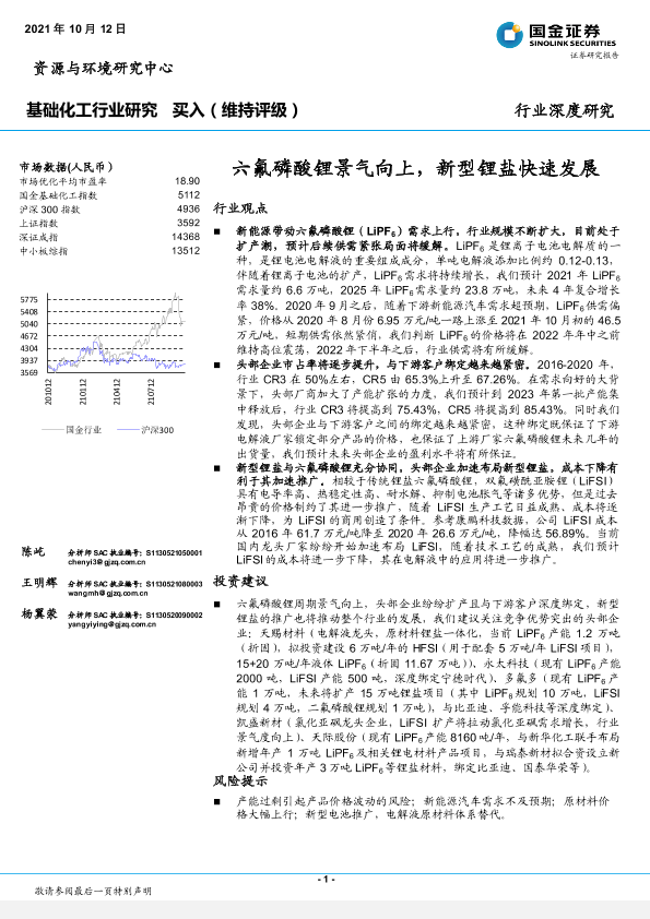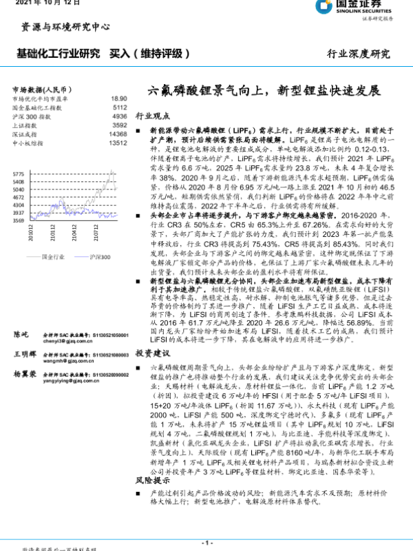 【国金证券】【20211012】基础化工行业:六氟磷酸锂景气向上,新型锂盐快速发展-25页