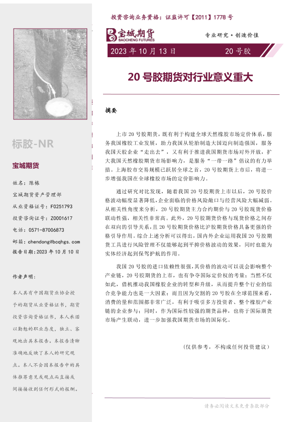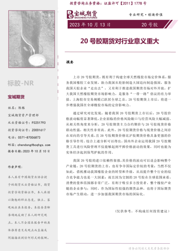 【宝城期货】【20231013】20号胶专题报告:20号胶期货对行业意义重大-27页