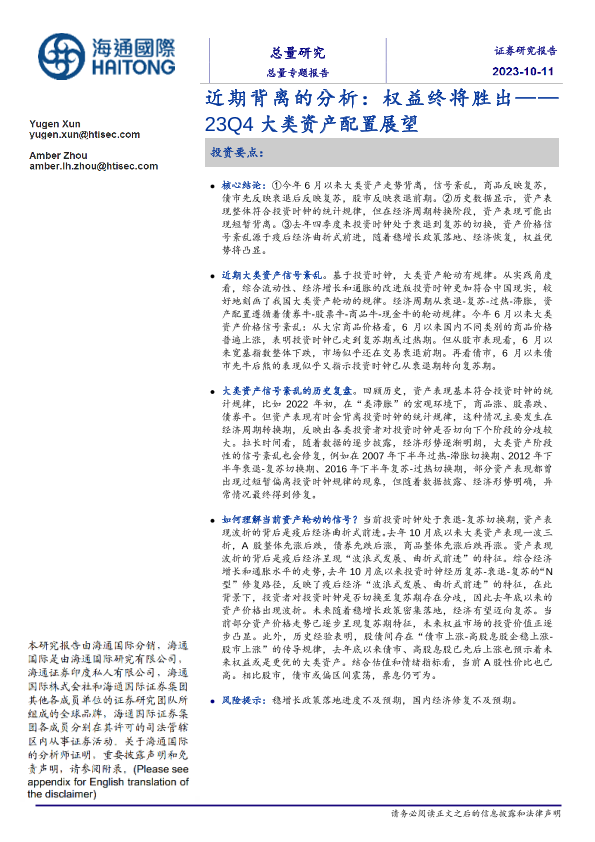 【海通国际】【20231011】23Q4大类资产配置展望:近期背离的分析,权益终将胜出-21页