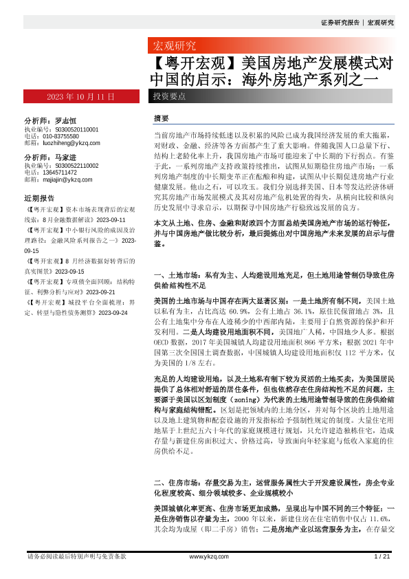 【粤开证券】【20231011】【粤开宏观】美国房地产发展模式对中国的启示:海外房地产系列之一-21页