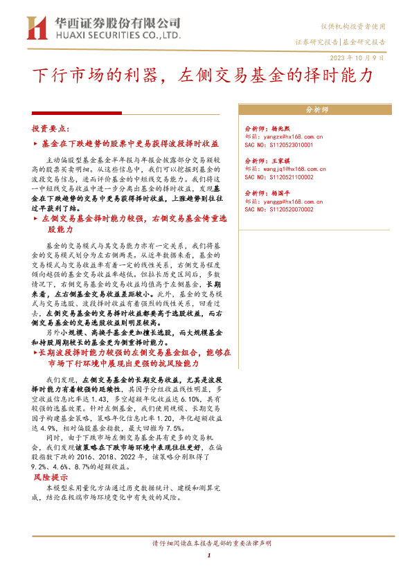 【华西证券】【20231009】下行市场的利器,左侧交易基金的择时能力-25页