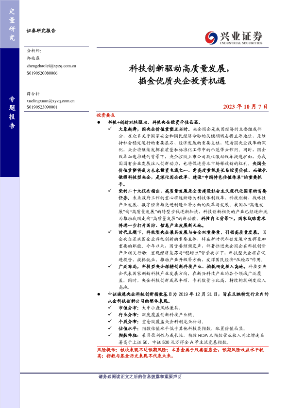 【兴业证券】【20231007】科技创新驱动高质量发展,掘金优质央企投资机遇-16页