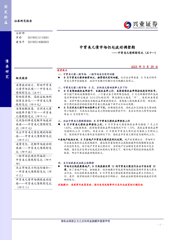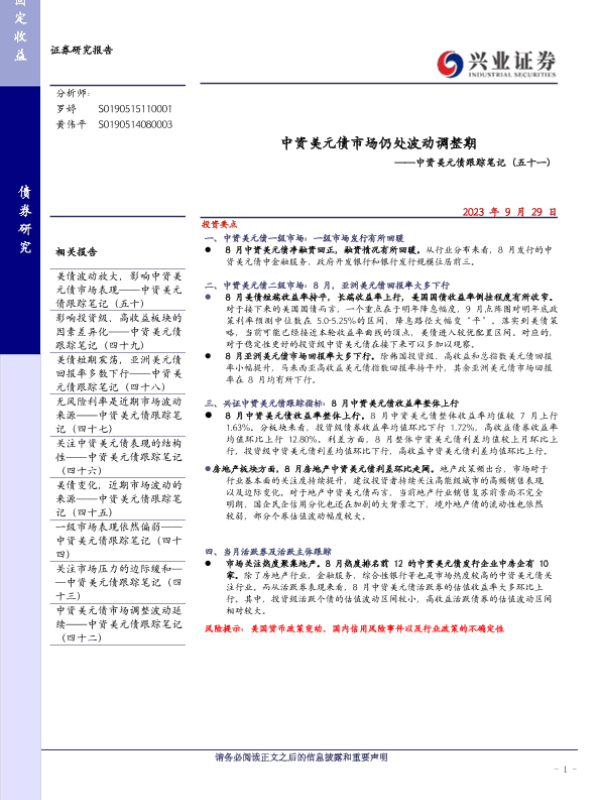 【兴业证券】【20230929】中资美元债市场仍处波动调整期-19页