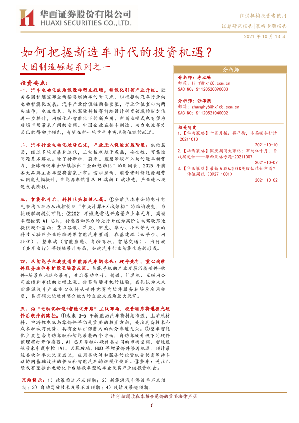 【华西证券】【20211013】大国制造崛起系列之一:如何把握新造车时代的投资机遇?-18页