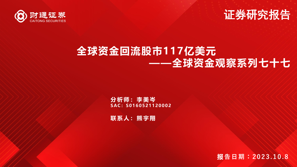 【财通证券】【20231008】全球资金观察系列七十七:全球资金回流股市117亿美元-30页
