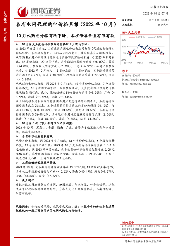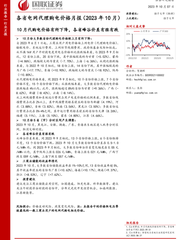 【国联证券】【20231007】公用事业行业各省电网代理购电价格月报(2023年10月)-44页