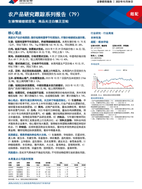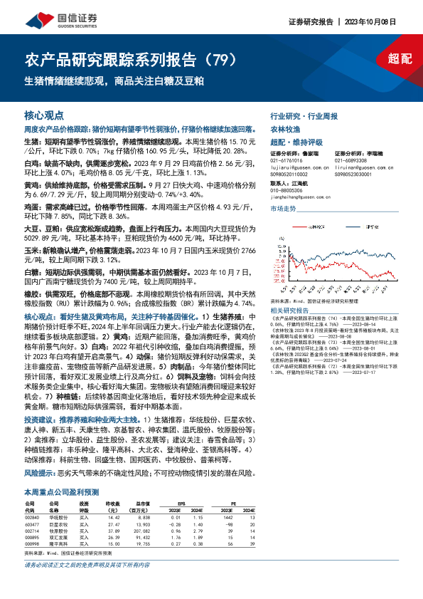 【国信证券】【20231008】农林牧渔行业农产品研究跟踪系列报告(79):生猪情绪继续悲观,商品关注白糖及豆粕-23页